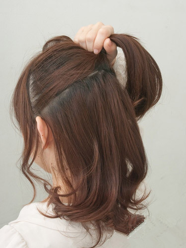 取出头顶上半部分头发扭转成发辫。