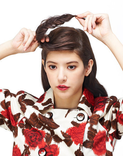 取出前额的刘海,并将刘海编成饱满的发辫。