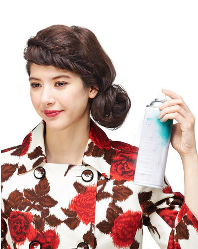 最后喷上啫喱水。定型,就可以完成这款花苞头发型了。