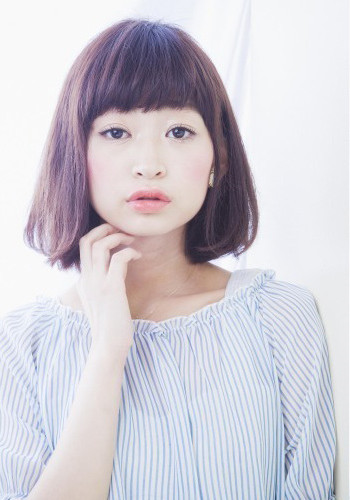时尚看点:时尚的紫色染发让这一款中短发看起来更显得更有个性范,那稍微内扣的发尾可以为女生营造出甜美感,配上一款齐眉的齐刘海后更是让甜美度倍增了不少哦,而那紧贴在右边脸颊的头发轻松为脸型起到修饰。