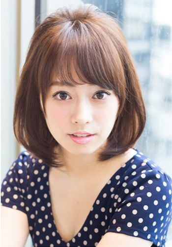 时尚看点:采用发尾内扣设计的这一款中短发内扣造型,给人十足的甜美气质哦,而两边微微内扣的头发遮盖了两边脸颊,在视觉上具有修颜瘦脸的作用。