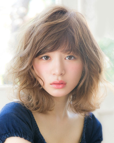 时尚看点:烫卷内扣弧度的刘海搭配蓬松凌乱的短发发型,给人的几分复古欧美造型的感觉,加上时尚的棕色染发不仅让使得发型更加时髦,而且还提升整个的吸眼指数呐。