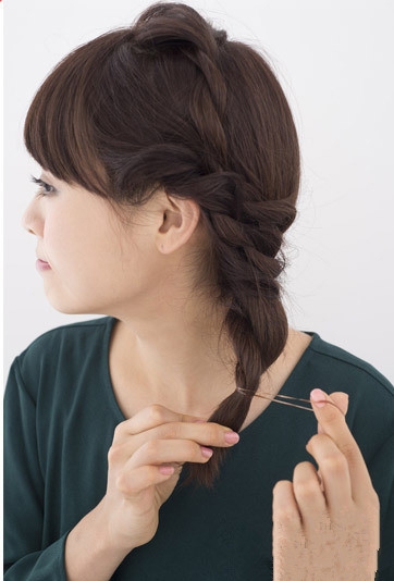 最后用准备好的橡皮筋固定好,就可以完成这款编发发型了。