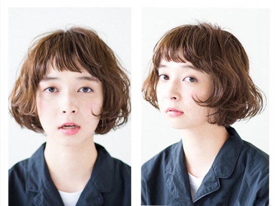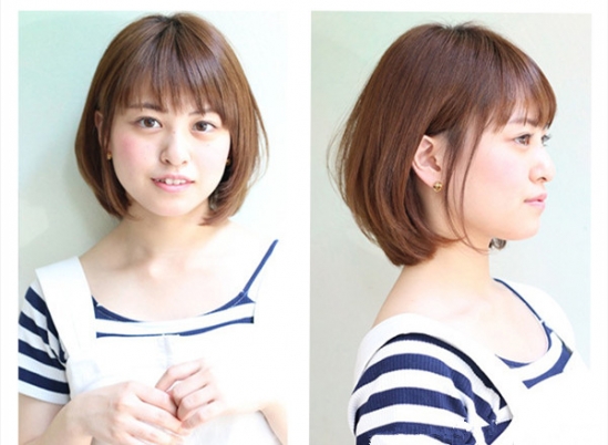 时尚看点:顺直的内扣波波头与细碎的空气感刘海搭配,既修颜减龄又女生犹如学生般甜蜜可爱,而那棕色的发色更是为整个造型增添了些许时尚感与清新风味。