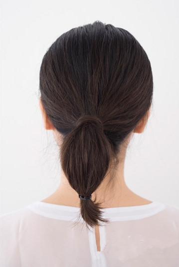 把束拢的头发用橡皮筋扎成一个马尾如图。