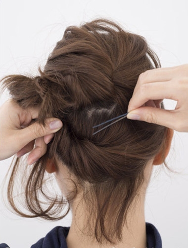 再用黑色小发夹固定好。