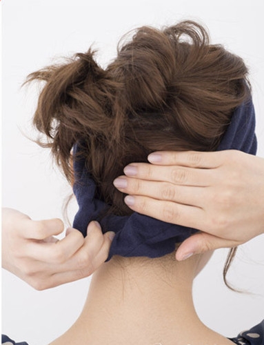 最后戴上头巾就可以完成这款短发发型了。