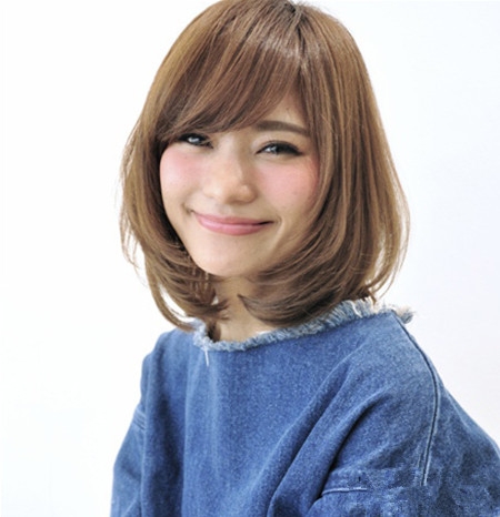 时尚看点:板栗色染发的内扣中短发看起来十分的清新与甜美哦,那刚好及肩长度的头发既清爽又不失淑女范儿,加上那甜美的平刘海与上不规则的发尾内扣设计,轻松就为造型勾勒出别致的时尚感和甜美感。
