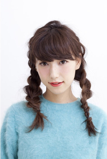 时尚看点:将唯美的卷发扎成俏皮又减龄的双边马尾辫,满满都是洋溢出青春少女的气息,搭配一款微微倾斜的齐眉刘海,不仅修颜十足更是让一双迷人的双眼,加上卷翘的弧度更是恰到好处的衬托出清新灵动的气质,而两边那蓬松又精致的三股麻花编织的双马尾,完美显尽女生的甜美范儿。
