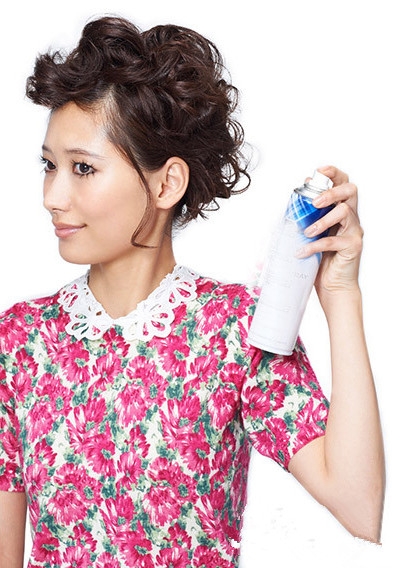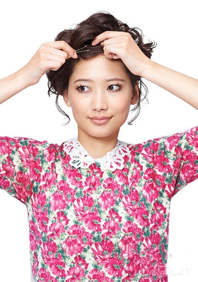 再把前额的刘海扭转一下后用固定起来。