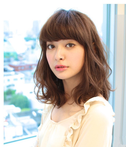 时尚看点:淑女气质满满的这款中短发型让人十分的喜欢不已哦,那时尚烫卷的头发自然散落在肩头处,散发出浓郁的迷人气息,配上一款厚重的齐刘海,既有修颜作用又能突出完美的脸型。