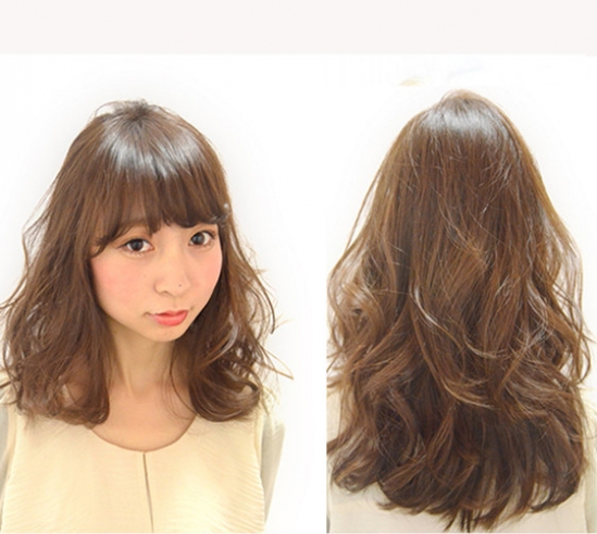 时尚看点:这款中长卷发圆脸发型给人一种萌萌哒的感觉,那柔顺烫卷的头发稍稍遮住两边侧脸,不仅显脸小而且还是十分的显优雅气质,再搭配一款遮眉的齐刘海,倍增可爱范儿的同时显女生圆脸脸型更加甜美动人。