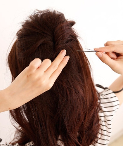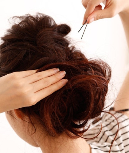 取出上半部分扭转后用发夹固定。