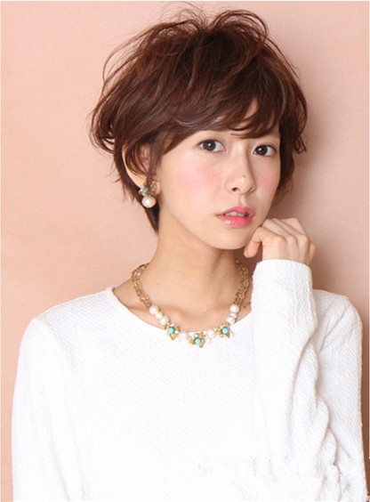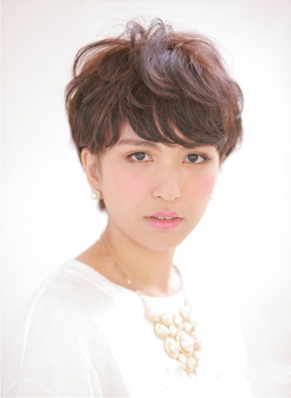 时尚看点:细碎头发设计的这款女士齐耳短发造型看似简约却一点也不少女人味,将头发注入微微的蓬松感,不仅头型更加饱满好看了更显时尚风尚,再搭配上一款空气刘海修饰,使得一张精致瓜子脸呼之欲出。