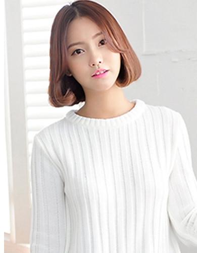 时尚看点:这款韩式短发发型尽显十足的清爽感,那圆润饱满的内扣卷发包裹在下巴处,轻松之间就勾勒出一张精致的小脸蛋,再加上中分发的设计与棕色染发的搭配,既显足清新甜美风更是倍增了几分别致风味的洒脱感。