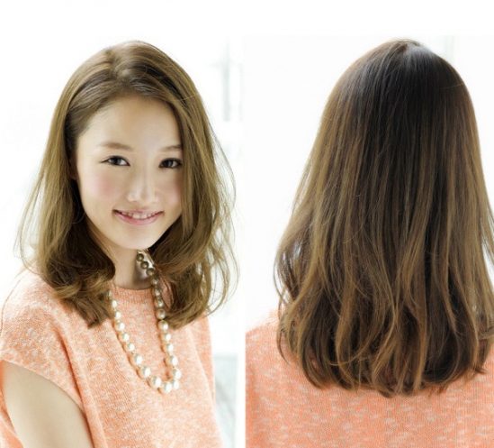 时尚看点:栗子棕色发色搭配的这款齐肩发型给人一种知性与大方的感觉哦,将发尾打造出内扣的样子,轻松就将时尚感带出来,再将左侧的头发撩至耳后的举动,可以让女生的完美侧脸轮廓尽显,同时还能倍增女生清新与甜美感。