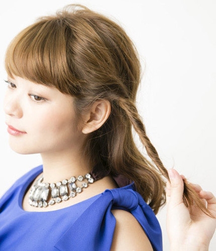 取出左侧耳朵附近的一小束头发并扭转成发辫。
