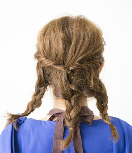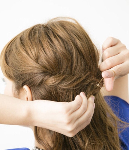 另外一侧也按照同样方法固定好,并将脑后的头发编成三股发辫。