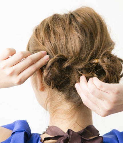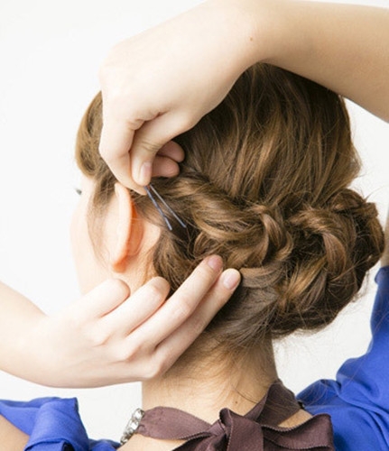 最后将发尾别进头发里面固定好,并带上准备好的精致发夹点缀就这款完成这款盘发发型了。