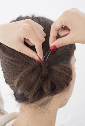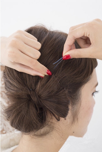 最后打造出蝴蝶结的效果,就可以完成这款花苞头扎发发型了。