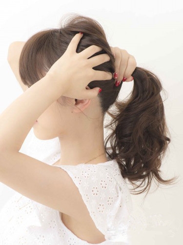 用手将头发束拢成马尾,再用橡皮固定好就可以完成这款马尾扎发了。