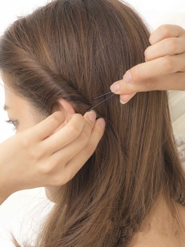 再用黑色小发夹固定好,就可以完成这款甜美的公主头扎发发型了。