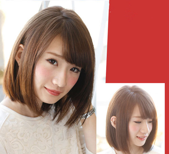 时尚看点:浅棕色的染发让这款短发尽显清新与淑女气息,那紧贴在脸颊两侧直发可以为女生起到很好的修颜的效果哦,再搭配上一款一九分的斜刘海就更是显淑女气质啦。