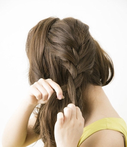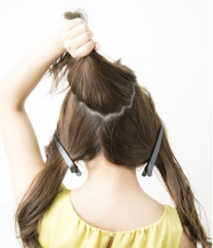 取出头顶的一束头发并编成三股辫子。