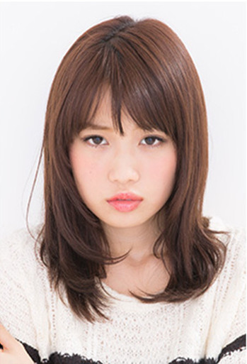 时尚看点:两边头发紧紧包裹住女生脸蛋,使得脸型看起来更加的圆润显可爱范,而那微微内扣的发尾与空气刘海的完美呼应,瞬间塑造出了一款时尚又好看的矮个子女生发型了。