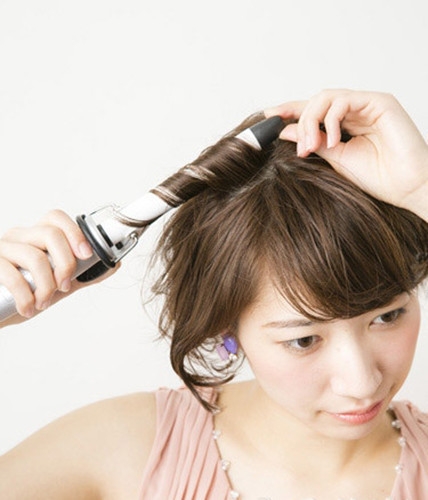 用加热的卷发将短发烫卷好。
