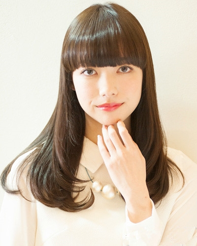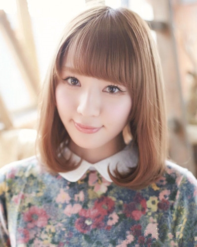 时尚看点:齐刘海搭配内扣发尾中长发的这款造型看起来十分的韩范,两边头发自然的散落在肩头,满满都向人洋溢出十足唯美与清新气息吗,加上浅棕色的染发就更加有文艺小清新感觉了。