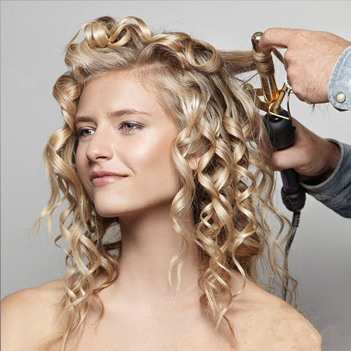 用加热后的卷发棒将头发全部烫卷如图的样子。