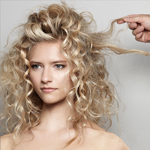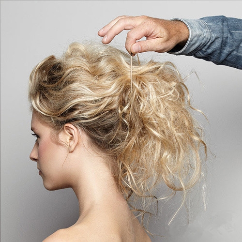 卷好头发后,用手指将头发拉扯出蓬松感。