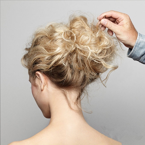 再将松松的高马尾盘成盘发的样子,再用小发夹固定好。
