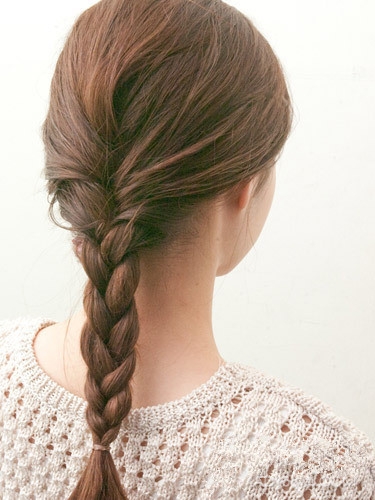将三股辫子编好至发尾再用橡皮筋固定好。