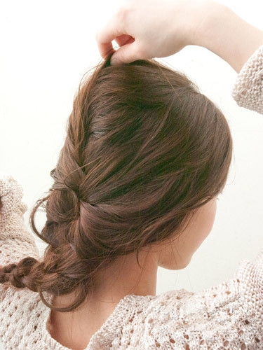 中长卷发怎么盘好看 三股辫盘发显尽精致感