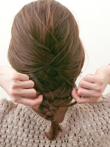 中长卷发怎么盘好看 三股辫盘发显尽精致感