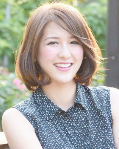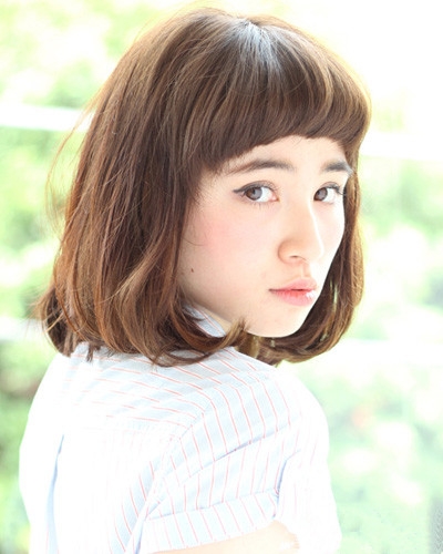 时尚看点:这款女性短发十分具有知性女人味,微微内扣设计的发尾与整齐露眉的刘海搭配,既清爽十足又增添了一种熟女的味道,最后将头发染上经典的棕色发色,轻松之间就能吸眼倍增时尚感。