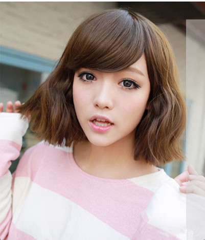 时尚看点:蓬松元素注入的这款韩式短发尽显头型饱满好看哦,搭配一款厚重的一九分斜刘海,既修颜十足还能凸显出一双迷人的大眼来,最后配上浅棕色染发就更是时尚好看了。