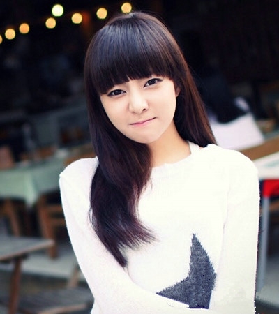 时尚看点:这款直发梨花头发型十分显女生清纯与清新的一面,两边的头发自然披散落在肩头,给人的感觉是那么的清新与迷人,加上一款一九分的厚重刘海搭配就更是时尚好看了。