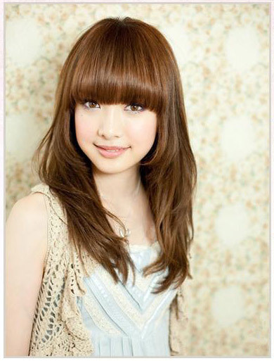 发型点评:国字脸适合的这款瘦脸中长卷发看起十分的甜美动人,搭配一款空气感十足的齐刘海齐刘海,轻松就衬托出了那灵动的双眼,再搭配上动人的唯美烫卷头发,瞬间让女生犹如芭比娃娃一样可爱。