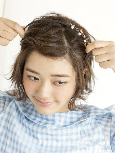 短卷发怎么打理好看呢?下面就让小编来为大会带来一款简单短卷发打理方式教程图,教大家简单两分钟内就能搞定枯燥无味的短卷发哦,加上精致发箍的点缀下更是吸睛显甜美范儿,现在就马上来和小编学起吧。