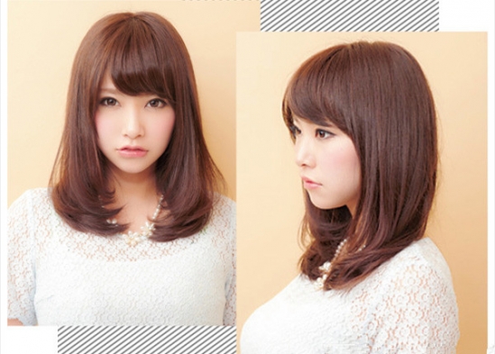 小脸适合的这款齐肩发型看起来十分显甜美范,利用一九分的刘海与紧贴脸颊垂落的头发结合,轻松就能为小脸修颜修脸,使得mm小脸型更显精致与你完美。