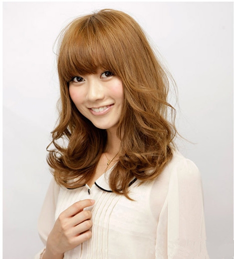 发型点评:带点日系风味的这款中长梨花头看来非常的经典入眼,将头发从脸颊处开始出好几个卷,不仅起到了修饰两边脸颊的效果更是倍增迷人气息,配上亮色的染发搭配就更是轻松UP吸眼指数。