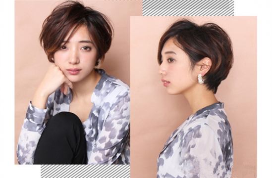 这款齐耳短发发型利用那遮住额头的三七分刘海来为mm脸型起到修饰作用,再将头发采用微微蓬松烫发的效果,来营造出饱满好看的头型。
