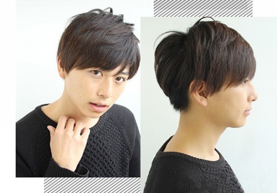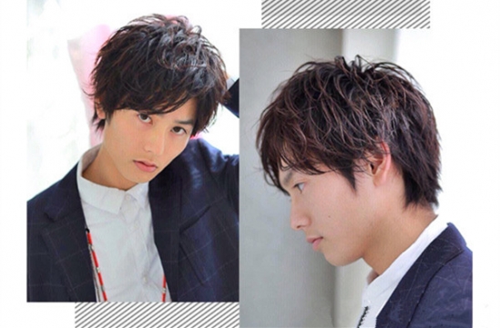 自然黑色发色的这款男生瓜子脸发型看起十分的显乖巧范儿,搭配一款细碎层次感的刘海,轻松之间就带出了一双明亮的大眼,再将层的头发采用微微定位烫卷,使得造型看起来更加的个性与时尚。