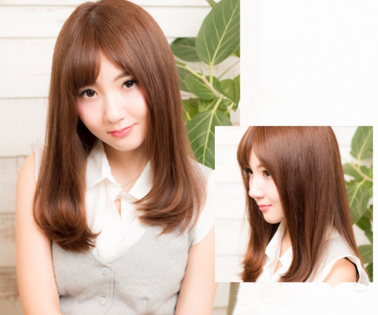 亚麻金这款中长直发在阳光的照射下可以突显出女生白皙的皮肤,儿那微微内扣发尾的设计搭配侧分刘海,瞬间就带出了十足的甜美味道。