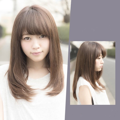 时尚看点:这款淑女发型适合发量较多的mm,配上一款厚重的及眉齐刘海,瞬间就为女生倍添了可爱的感觉,而那软顺的直发自然披下,更是特别的甜美吸人。