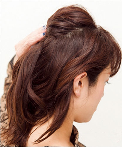 先将顶部的头发一小撮头发,然后扭转再稍微往上顶成一拱形固定好。