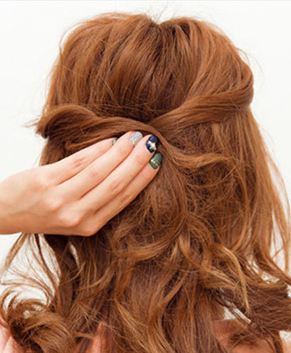 首先将头顶两侧的取出两束头发放在脑后的中间。
